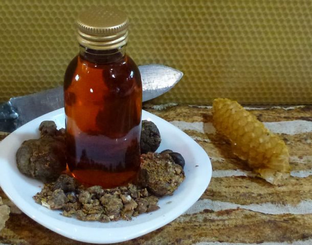 - Lượng sản phẩm nuôi ong quy định được cho vào cồn. Thùng được đặt trên lửa nhỏ và nung đến 50 ° C. Đồng thời, chúng được trộn liên tục và không đun sôi.