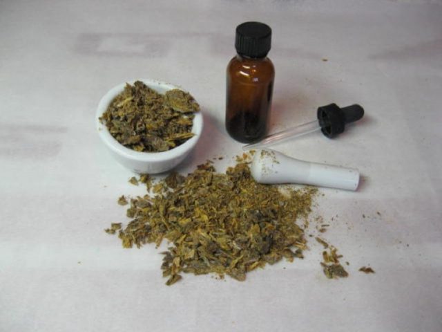 Khi bị mụn rộp vào buổi sáng khi bụng đói, hãy uống một nửa cốc nước bên trong, sau khi hòa tan 20 giọt dung dịch cồn trong đó, trong một tháng. Vết mẩn ngứa được xoa với cồn sạch nhiều lần trong ngày.