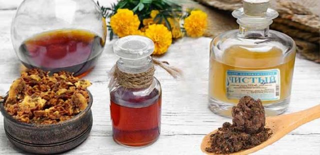 Để điều trị viêm phế quản mãn tính, thêm 30 giọt cồn vào một ly đồ uống ấm. Tiêu thụ 3 lần một ngày trước bữa ăn trong 10 ngày.