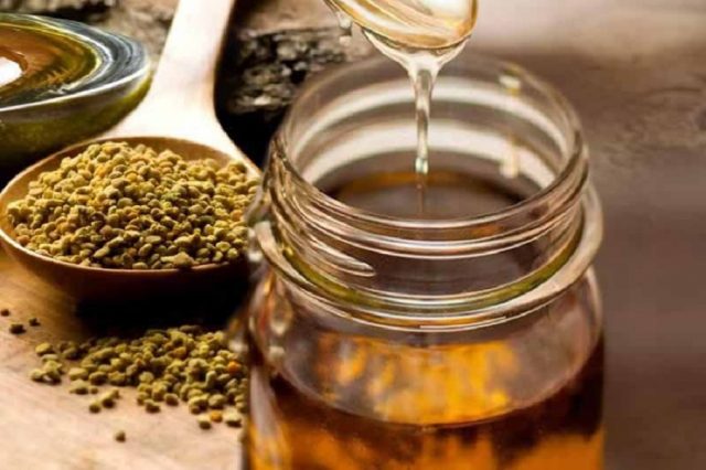 - 3 muỗng canh. l. dầu ngô, mật ong và cồn keo ong trên rượu.