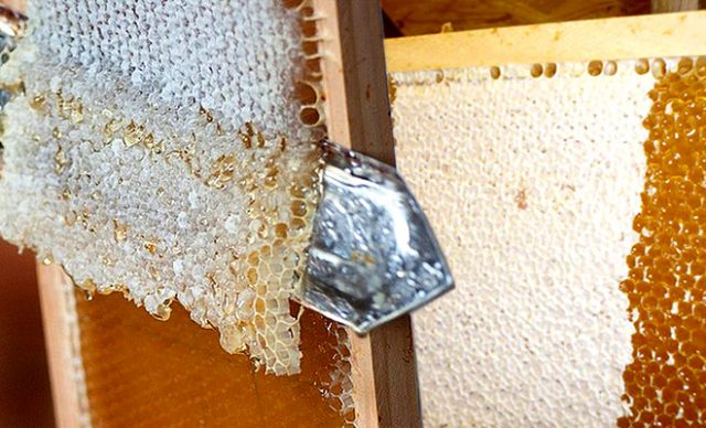Ngay trước khi bơm mật, con dấu được cắt ra khỏi tổ ong bằng một dụng cụ đặc biệt - một con dao châm. Các tổ ong được gửi đi để chưng cất, và con dấu được đặt với nắp đậy lên để cho phép mật ong thoát ra tự do từ nó. Đôi khi một con hải cẩu được đưa cho ong để lấy mật từ nó.