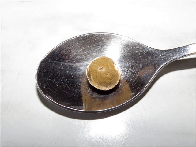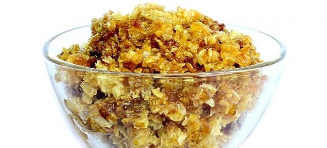 Tiêu thụ 2 lần một ngày trước bữa ăn. Cần phải nhai kỹ và nuốt hỗn hợp 1 muỗng cà phê nửa giờ trước bữa ăn. ủng ong và 1 muỗng cà phê bột ngọt. keo ong. Quá trình điều trị là 1 tháng.