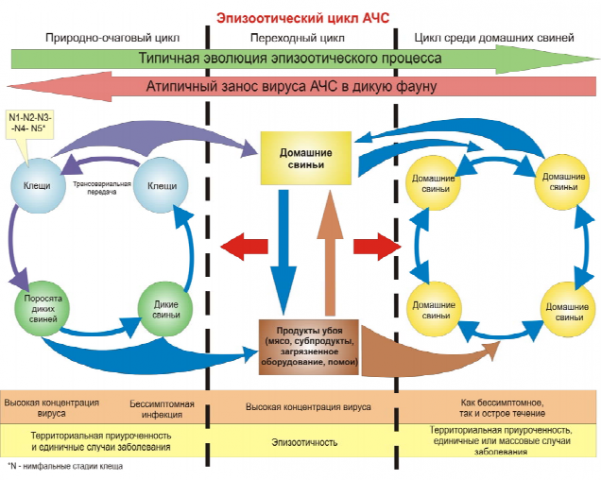 Virus gây bệnh dịch tả lợn châu Phi (ASF) là một bệnh tiêu điểm tự nhiên ảnh hưởng đến lợn rừng ở châu Phi. Virus ASF vẫn tồn tại ở đó cho đến đầu thế kỷ XX, khi những người thực dân da trắng quyết định đưa lợn nhà châu Âu đến lục địa châu Phi. “Thổ dân” châu Phi trong quá trình tiến hóa đã thích nghi với virus gây bệnh dịch tả lợn châu Phi. Virus ASF của chúng tồn tại ở dạng mãn tính trong đàn gia đình. Loại vi rút này không gây hại nhiều cho sâu non, bọ tai và lợn rừng lớn.
