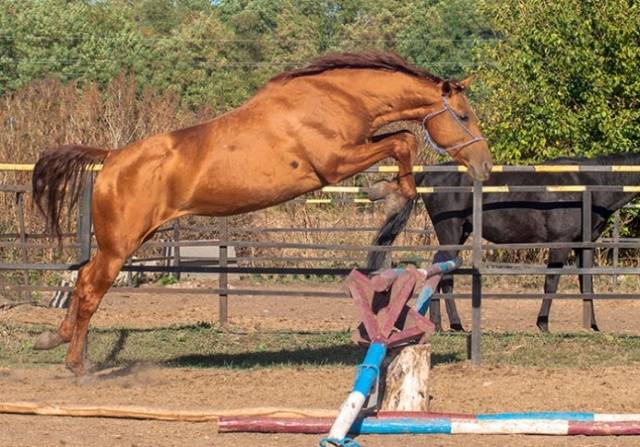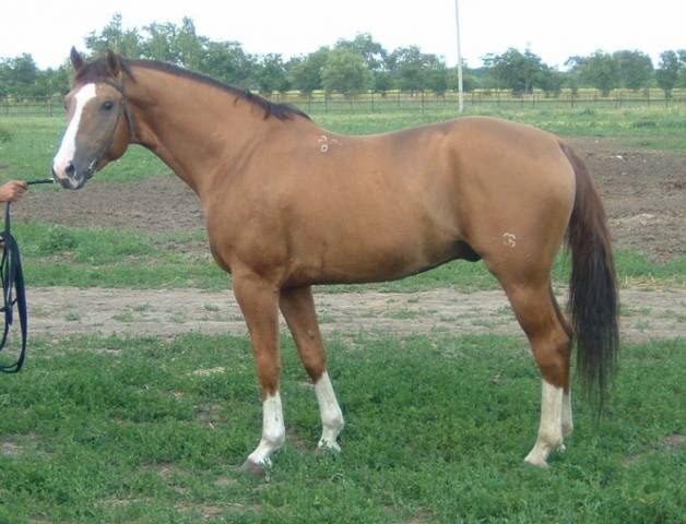 Con ngựa giống Piebald Donskoy Bagor, được ghi trong GPK là màu đỏ vàng.