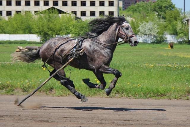 Oryol trotter là một con ngựa được sử dụng phổ biến. Chúng không được ưa chuộng lắm trong cách ăn mặc vì kiểu phi nước đại "chạy nước kiệu" cụ thể là bốn thì. Nhưng không phải tất cả những người chạy lúp xúp đều phi nước đại như vậy. Hơn nữa, anh ta đang được sửa sai. Mặc dù là một ngoại lệ, Oryol chạy nước rút đã đến được Thế vận hội Olympic. Trong ảnh là chú ngựa Balagur thuộc giống Oryol dưới yên ngựa của Alexandra Korelova.