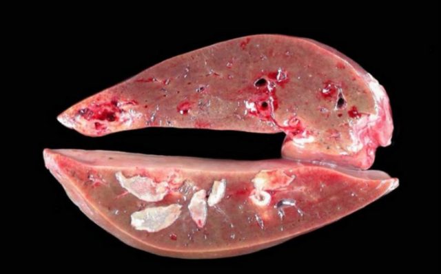 Ký sinh trùng phá hủy mô gan, làm tắc đường mật, gây ứ trệ dịch mật.