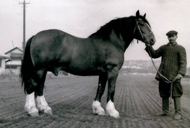 Nhưng trong những bức ảnh cũ về ngựa của giống ngựa này, ngựa kéo hạng nặng Vladimir đôi khi vẫn "nhìn trộm" một con Shire chân ngắn và to lớn.