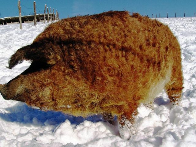Lợn thuộc giống Mangal rất bắt mắt với vẻ ngoài khác thường. Chúng có một bộ lông dày và xoăn cho phép chúng trú đông ngoài trời. Ở Nga, giống chó này rất hiếm và được nông dân coi trọng.