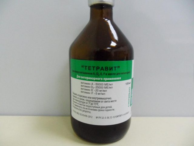- Tetravit và Trivit... Lợn con được tiêm 1 ml mỗi tuần, và liều lượng cho con trưởng thành là 5 ml. Để điều trị, các loại thuốc được dùng với liều lượng như nhau, nhưng đã 3 lần một tuần. Đối với những người không muốn tiêm, lựa chọn tốt nhất là thêm thuốc vào thức ăn. Lợn nhỏ có thể nhỏ 5 giọt mỗi ngày, con lớn - 15. Trị liệu kéo dài cho đến khi hồi phục hoàn toàn.Như một biện pháp phòng bệnh, không thay đổi liều lượng, bạn chỉ cần thực hiện bài thuốc trong 10 ngày và nghỉ ngơi nửa tháng.
