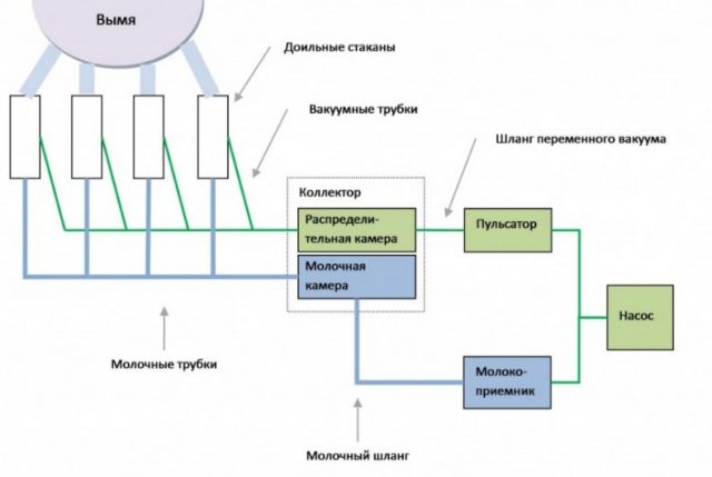 Các đơn vị vắt sữa khác nhau về cách vận chuyển sữa. Ở nhà và ở các trang trại nhỏ, các thiết bị di động có hộp được sử dụng. Tại các trang trại lớn, sữa được thu gom trong một thùng chứa lớn cố định và được vận chuyển qua các đường ống dài.