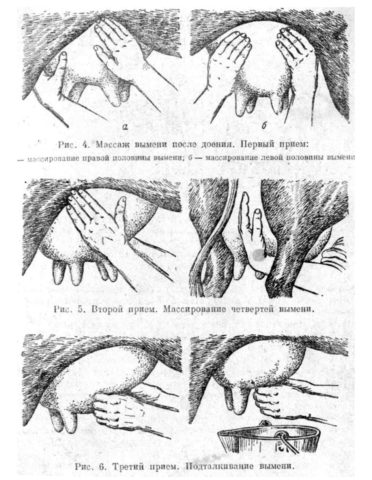 Sự hình thành chính xác của tuyến vú và năng suất của nó được hỗ trợ bởi massage thực hiện trong 12 - 15 phút. Những con bò cái hậu bị (những con bò non bị tật nguyền) trước hết phải quen với nó.