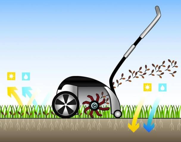 Máy sục khí là một loại lược chải cỏ... Nói cách khác, công cụ có thể được gọi là một cái cào, chỉ với những răng đặc biệt. Khi chải cỏ, chúng cắt vào đất, để lại những rãnh nhỏ. Sự xâm nhập của oxy và độ ẩm vào đất tăng lên qua các khe này. Hệ thống rễ của cây bắt đầu phát triển tốt hơn và cỏ trên bãi cỏ có vẻ ngoài khỏe mạnh. Với sự trợ giúp của máy sục khí, tất cả các mảnh vụn được loại bỏ khỏi bãi cỏ, cỏ mỏng đi và lớn cỏ dại.