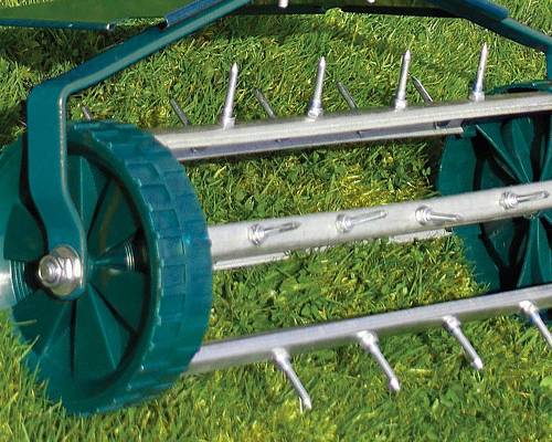 Máy sục khí cơ học và máy lọc khí năng suất cao nhất được coi là những mô hình được sản xuất dưới dạng một chiếc xe đẩy nhỏ có bánh xe. Trong khi di chuyển nó dọc theo bãi cỏ, cùng với các bánh xe, trục có dao bắt đầu quay, tạo ra các vết thủng và cắt các rãnh nhỏ trên mặt đất. Kích thước của công cụ có thể rất khác nhau. Trục càng rộng, diện tích bãi cỏ có thể được xử lý trong 1 lần di chuyển càng lớn.