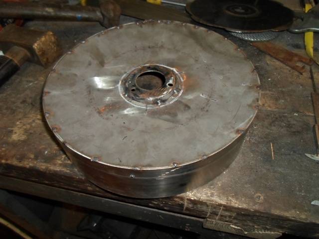 - Bây giờ đối với máy thổi tuyết, bạn cần tạo một lối ra - một thiết bị làm lệch hướng qua đó tuyết sẽ được ném ra ngoài. Một lỗ được khoét trên kệ bên của hộp đựng. Nó có thể được làm vuông hoặc tròn tùy thích. Đường kính lỗ là 100 mm. Ống nhánh được hàn vào nó sau đó. Và bây giờ chúng ta cần cắt một khoảng trống theo hình nửa vòng tròn từ một tấm thép. Phích cắm này dùng để hàn 1/3 phần cuối mặt của thân ốc. Phích cắm sẽ ngăn không cho tuyết bay ra khỏi ốc về phía trước, nhưng sẽ hướng nó vào bộ phận làm lệch hướng. Lỗ thông hơi phải được đặt chính giữa trên nắp phía trước.