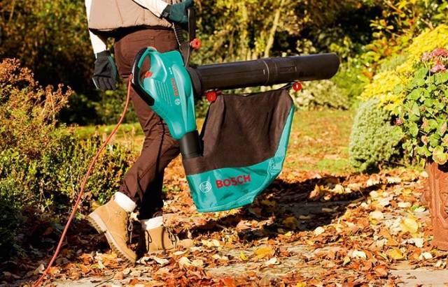 - Máy hút bụi sân vườn ngoài chức năng thổi còn có chức năng hút, rất tiện lợi khi làm việc với tán lá và các chất hữu cơ khác. Những mô hình như vậy được trang bị một túi đặc biệt, giúp thu gom rác và tán lá bị hút. Bộ tích lũy này được bao gồm trong bộ quạt gió và có thể dễ dàng làm sạch khi nó đầy. Máy hút bụi sân vườn cho thu hoạch lá có nút cho phép bạn chuyển máy từ chế độ thổi sang chế độ hút bụi và ngược lại.