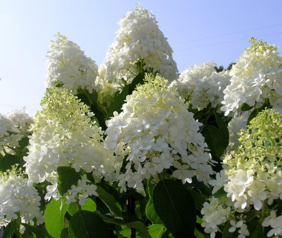 Paniculata có cụm hoa ở dạng chồi hình tháp rộng với những bông hoa vô tính lớn (đến 2,5 cm), đầu tiên màu trắng hơi xanh, sau đó hơi hồng, và với những hoa quả nhỏ màu trắng.