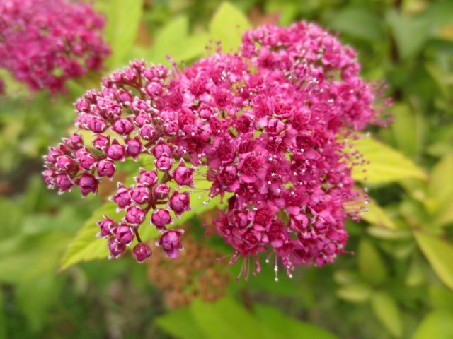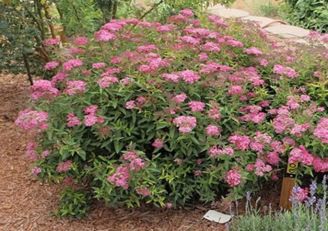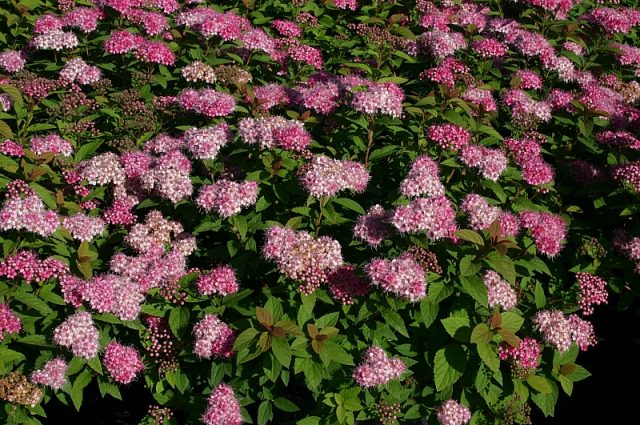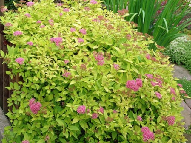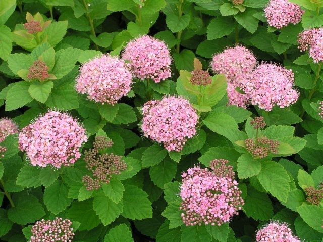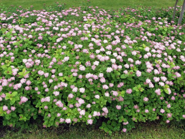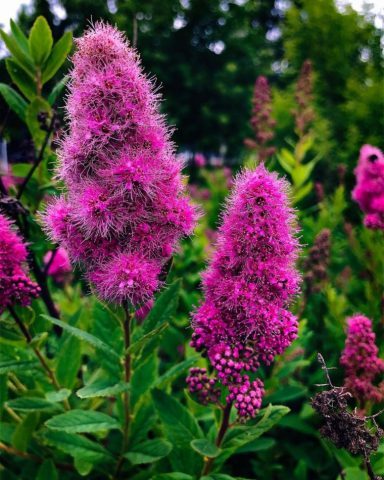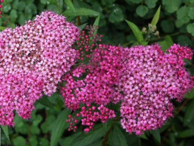 Meadowsweet nhận được tên gọi này vì chùm hoa hình bông chùm dày đặc và khá lớn có màu hồng, có khả năng đạt đường kính 10-12 cm. Bản thân cây bụi không cao lắm và chỉ có thể phát triển 80 cm, trong khi đường kính của vương miện sẽ ít nhất là một mét.