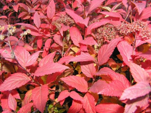 - vào mùa thu, lá cây được bao phủ bởi một màu đỏ cam đỏ thẫm.