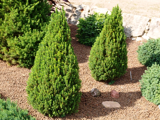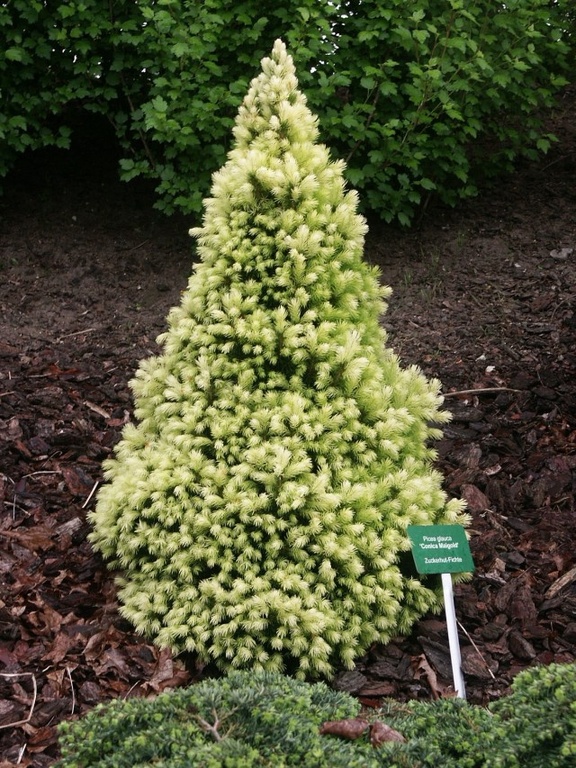 Có rất nhiều giống lùn có nguồn gốc từ đột biến của loài phổ biến nhất - Koniki. Trong quá trình quan sát cây con của cô ấy, người ta đã phát hiện ra những cành hoặc toàn bộ cây có sai lệch so với tiêu chuẩn. Đây là cách mà giống vân sam Canada Maygold xuất hiện.