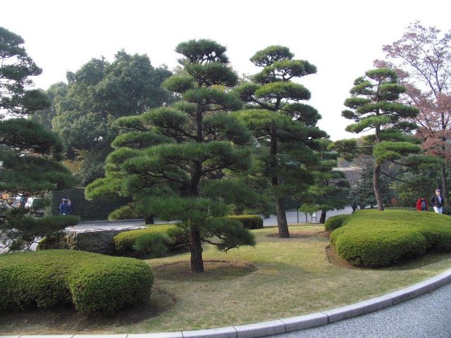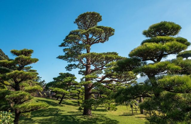 Họ sử dụng thông Nhật Bản để trang trí các ngọn đồi núi cao, sườn núi, ven rừng và đặt nó như một bố cục duy nhất trên các bãi cỏ.