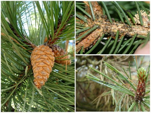 Sự xuất hiện của cây trên lá kim là dấu hiệu của cây thông. Như một biện pháp điều trị, cây thông Nhật Bản được điều trị bằng Actellik.