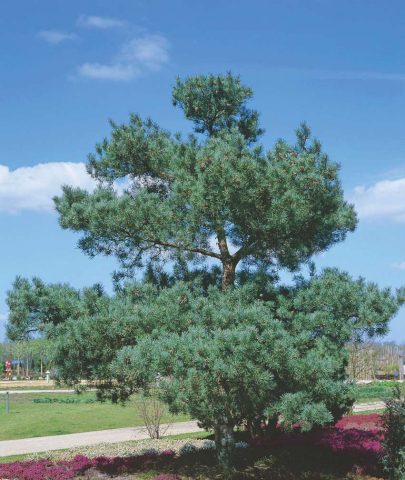 - Glauca: cây trưởng thành, cao 10-12 m, tán đạt đường kính 3-3,5 m. Cây phát triển nhanh, hàng năm cao thêm 18-20 cm, hình dạng giống hình nón, hơi không đối xứng. Các cây kim của cây rất rậm rạp, có màu xanh bạc nhiều, được trình bày dưới dạng các chùm nối đôi. Sinh trưởng và sinh kế của thông Glauca chịu ảnh hưởng thuận lợi từ đất đai màu mỡ, thoát nước tốt và tơi xốp. Với sự chăm sóc thích hợp, bạn cũng có thể trồng cây trên cát. Nên trồng thông ở những nơi có nhiều ánh sáng.