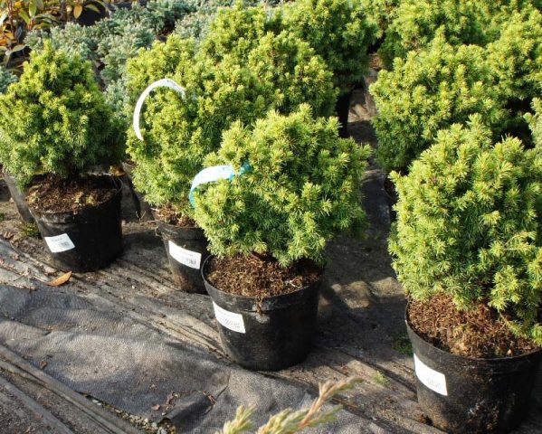 Những cây lùn như vân sam Canada của Alberta Globe đặc biệt phổ biến. Đối với một khu vườn nhỏ, chúng chỉ đơn giản là không thể thay thế, và trong một khu vườn lớn, chúng được sử dụng làm tầng giữa và tầng dưới của các nhóm cảnh quan.