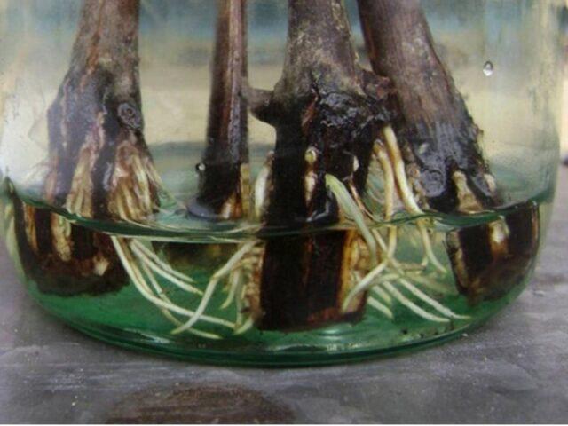Để tăng tỷ lệ hom ra rễ, trước khi trồng vào giá thể, chúng phải được giữ ít nhất 2 giờ trong dung dịch "Heteroauxin".