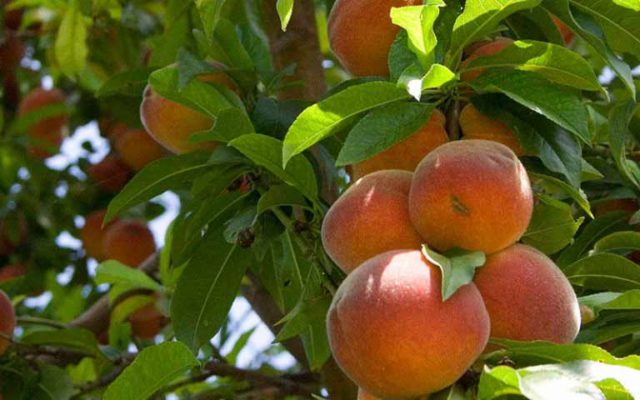 Steinberg... Giống có hình chóp hình chóp. Chiều cao của cây trưởng thành có thể lên đến 2 mét. Quả có hình tròn, màu vàng cam. Trọng lượng trung bình của chúng là 150 g. Từ phía có ánh nắng mặt trời, những quả đào xuất hiện một màu đỏ thẫm. Cùi thơm, mọng nước, màu hơi vàng.