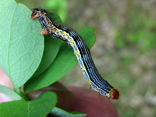 Bướm đêm việt quất là một loài bướm khác có sâu bướm háo hức ăn lá việt quất. Những loài gây hại này được phân biệt bởi thực tế là, ngoài các chân thông thường, chúng có bốn chân bụng, có thể nhìn thấy rõ ràng trong bức ảnh. Chúng có màu vàng dễ thấy với các đường đen dọc theo cơ thể. Sự xuất hiện của những loài gây hại này là vào tháng Năm.