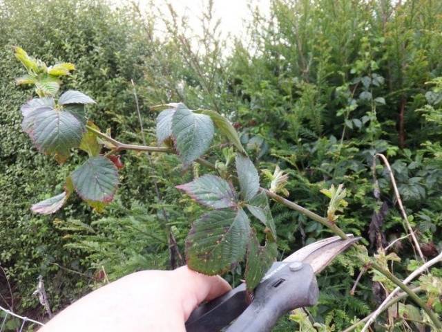 Cành dâu đen già, có quả được cắt thành khoanh. Chúng sẽ không còn cho cây trồng nữa, và mùa sau chúng sẽ tự khô héo. Nếu các sợi mi già còn lại, chúng sẽ chỉ lấy đi nước và chất dinh dưỡng từ các chồi đang sinh ra và làm bụi cây dày lên.