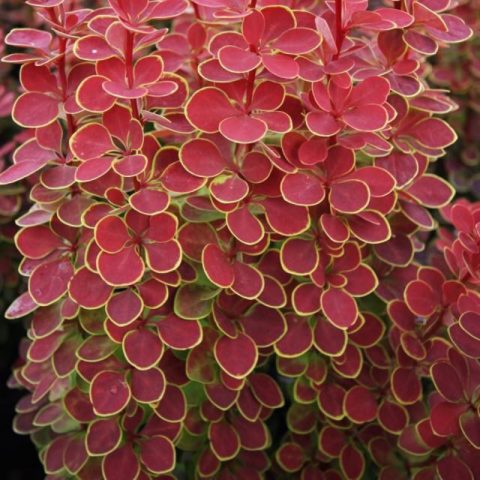 Cây bụi phát triển chiều cao không quá 1,5 m. Có lá dày đặc màu đỏ cành mọc thẳng. Lá tròn hình đồng xu, màu cam tươi hoặc đỏ tươi, dài tới 3 cm, ở cây bụi già có viền màu vàng dọc theo mép lá. Màu này cho phép bạn trồng barberry Sunrise làm cây cảnh.