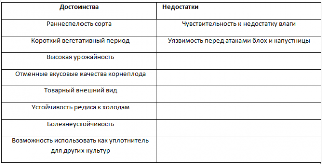 Nhìn chung, củ cải của giống này khá khiêm tốn, và các vấn đề chính của việc trồng trọt là vi phạm các quy tắc chăm sóc.