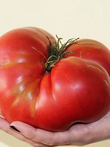 - hình dạng tròn, cao vai và bề mặt chia thành các phần không đều nhau, trọng lượng trung bình lên đến 350 g, khi bình thường hóa mật độ chùm quả cà chua nặng 500-600 g;