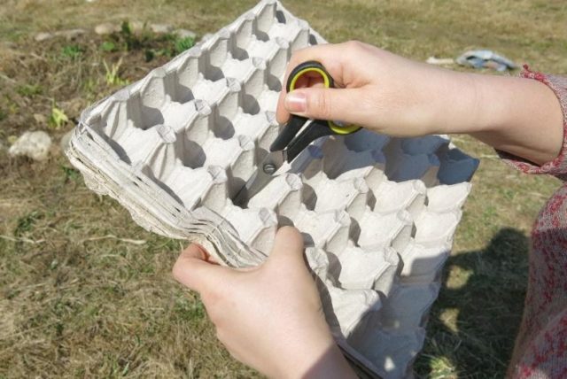 - Đặt các tế bào trứng đã chuẩn bị sẵn vào khu vực đã chọn, ấn chúng xuống đất để đất bắt đầu nhô ra khỏi các lỗ một chút. Điều này giúp tránh một khoảng trống giữa đất và các khay, hạt có thể rơi vào.