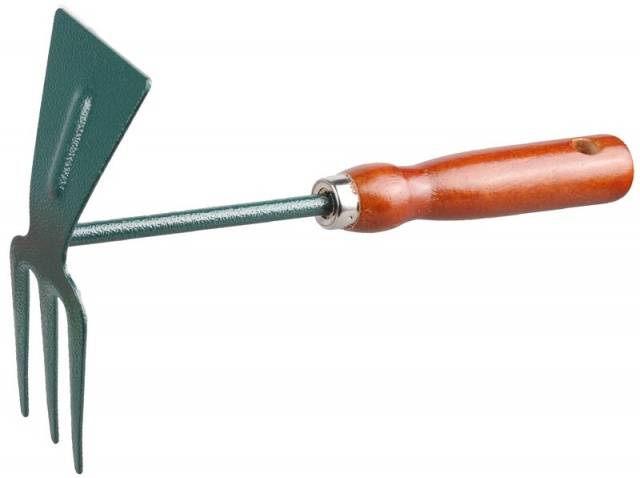 Như là loại bỏ cỏ dại trông giống như một cái nĩa có hai ngạnh lớn. Các răng của dụng cụ có khoảng cách rộng rãi, bằng phẳng. Một hình dạng được suy nghĩ đặc biệt cho phép bạn thực hiện công việc loại bỏ cỏ dại một cách nhanh chóng và hiệu quả. Sử dụng máy xới đất, bạn thậm chí có thể canh tác những khu vực xung quanh cây ăn quả mà không gây hại cho bộ rễ. Nó rất dễ dàng để vận chuyển và sử dụng.