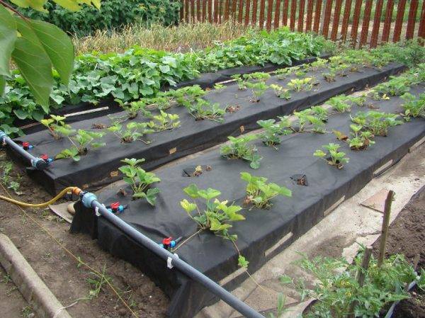Nếu bạn tưới dâu tây marshmallow theo cách thông thường, bạn nên tránh để nước dính vào lá và quả. Nó có hại cho họ, bệnh tật có thể xuất hiện. Cách tốt nhất để tưới nước là lắp đặt hệ thống nhỏ giọt. Trong trường hợp này, cây sẽ nhận được nước đúng giờ và đủ lượng. Hãy xem bức ảnh dưới đây để xem nó trông như thế nào trong thực tế.
