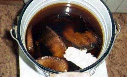 - Men được thêm vào nước ấm (1 kg trên 5 l). Một thìa đường sẽ giúp đẩy nhanh quá trình lên men. Dung dịch thu được được pha loãng thêm với nước 1:20 và được sử dụng để tưới cây ở gốc.