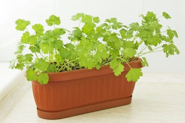 Để trồng rau mùi tây trên bệ cửa sổ, hộp nhựa hình chữ nhật là tối ưu.