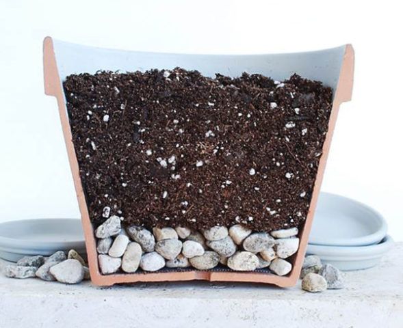 Lớp thoát nước tránh rễ mùi tây bị thối rữa khi trồng trên bệ cửa sổ