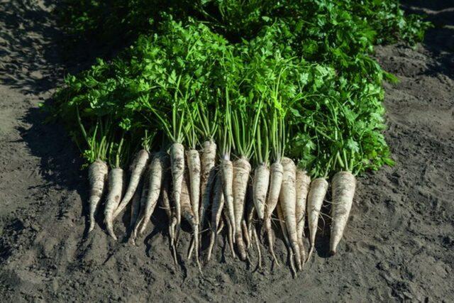 Thời điểm thu hoạch chính xác tùy thuộc vào giống cây trồng. Nhưng theo truyền thống, nên đào rễ mùi tây vào mùa thu vào cuối tháng 9 hoặc vào tháng 10 vào một ngày khô và nhiều nắng.Những chiếc lá xanh được cắt trước thành cây gai nhỏ, phần dưới đất được cắt bỏ khỏi mặt đất và để khô trong vườn. Sau đó, hoa quả được phân loại và vứt bỏ những mẫu vật hư hỏng, thối rữa.
