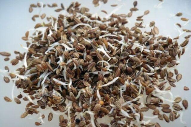 - Sau khi hết thời kỳ, hạt được rửa sạch và đặt trên một miếng gạc trong 5-6 ngày cho đến khi cây con xuất hiện.