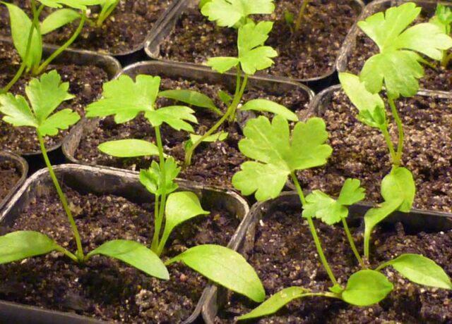 Cần trồng cây con ở nơi có ánh sáng, nhiệt độ khoảng 25 ° C, theo dõi kỹ độ ẩm của đất. Khi mùi tây ra rễ cho những chiếc lá thật đầu tiên, nhiệt độ sẽ cần giảm xuống chỉ còn 18 ° C