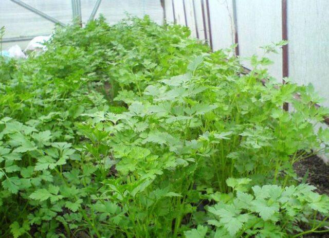 Ưu điểm chính của nhà kính là có thể gieo hạt vào cuối tháng 1 mà không cần đợi đến mùa xuân. Ngò tây gốc được trồng theo cách tiêu chuẩn, nhưng khi trồng sớm, cần sử dụng thêm hệ thống chiếu sáng bằng đèn huỳnh quang. Mặt trời ban ngày vào cuối mùa đông vẫn còn quá ít cho sự phát triển thành công của văn hóa.