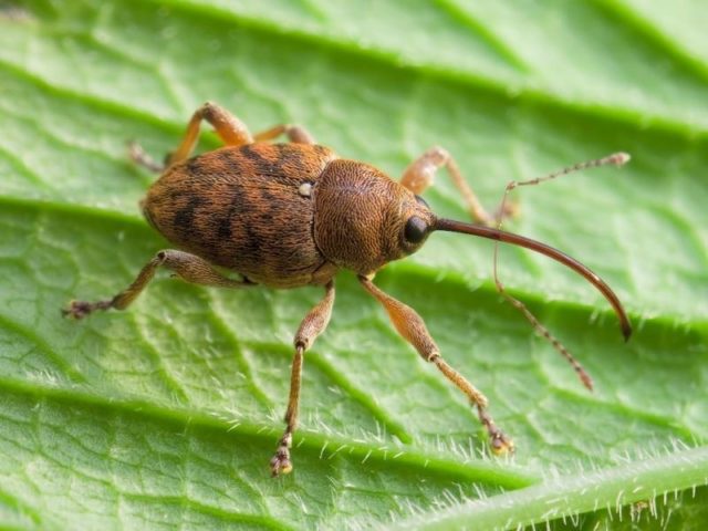- Mọt. Con trưởng thành ăn phần xanh non của cây. Tốt hơn là thu thập chúng bằng tay hoặc giũ chúng trên vải hoặc báo. Các quần thể loài mọt hiếm khi đáng kể, và chúng không xuất hiện hàng năm.