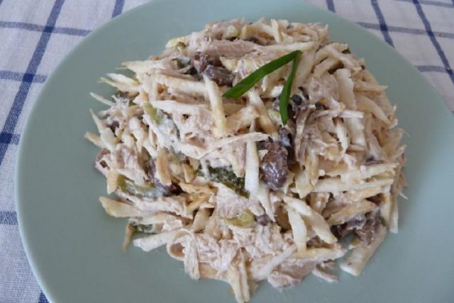 - Trứng luộc chín bóc vỏ và dùng dao cắt thành từng miếng ngẫu nhiên. Tất cả các thành phần được kết hợp trong một bát salad và trộn.