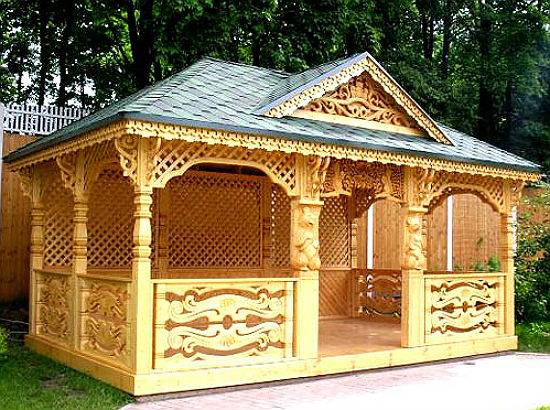 Bây giờ, chúng tôi sẽ xem xét cách xây dựng một vọng lâu trong ngôi nhà mùa hè của bạn. Ví dụ, chúng ta hãy lấy vật liệu đơn giản và dễ tiếp cận nhất - gỗ.
