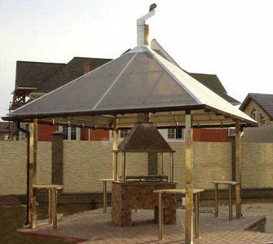 - Polycarbonate có thể được gọi là một ơn trời cho một vọng lâu. Các tấm trong suốt sẽ khiến chủ nhân của căn biệt thự phải trả giá không đắt. Đối với polycarbonate, bạn chỉ cần xây dựng khung từ bất kỳ vật liệu có sẵn nào. Làm nền móng, bạn có thể sử dụng nền cứng phẳng hoặc đổ bê tông các trụ khung chính.