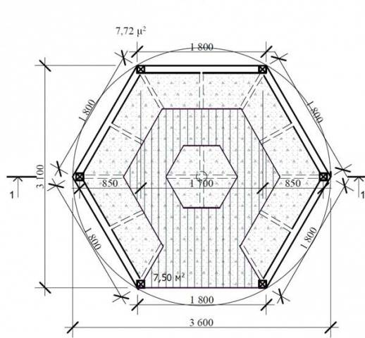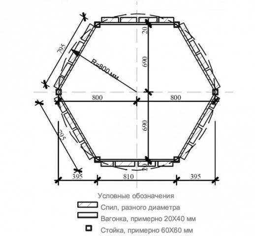 Chúng tôi bắt đầu xây dựng một vọng lâu, thậm chí là một vọng lâu đơn giản nhất, bằng việc vẽ một bản vẽ. Khung sẽ được làm theo hình lục giác, và sàn nhà sẽ được thay thế bằng lớp bê tông. Bức ảnh cho thấy các bản vẽ của vọng lâu. Bạn có thể để các kích thước này hoặc tự tính toán.