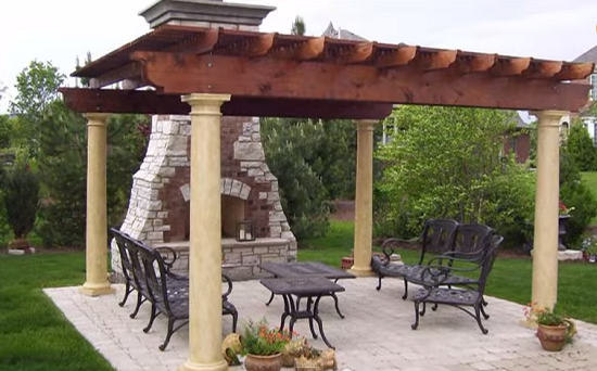 Dễ sản xuất nhất là giàn che và mái hiên. Trong lần xây dựng đầu tiên, mái nhà được thay thế bằng sàn lát gạch. Các tán đơn giản nhất có thể được gắn vào một trong các bức tường của tòa nhà. Trong trường hợp này, bạn chỉ cần cài đặt hai bài viết.